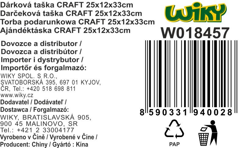 Papirnata darilna vrečka CRAFT velikosti M 25×12×33 cm. Celoten opis