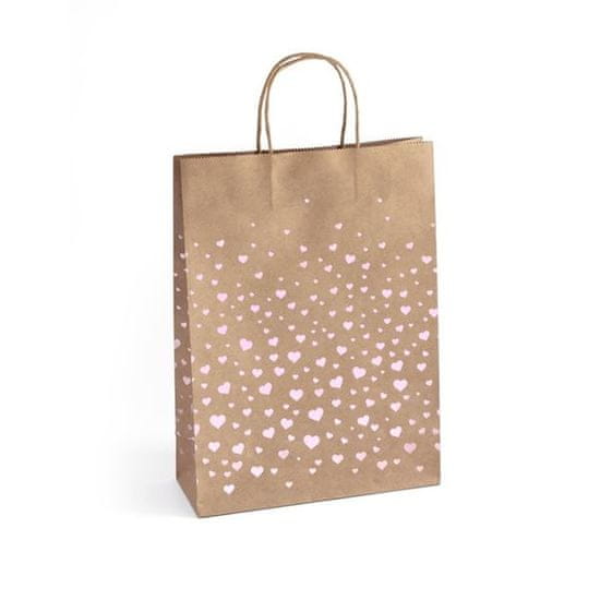 Galeria Papieru Darilna vrečka - L, 33 x 24, kraft, roza srčki, 5 kosov