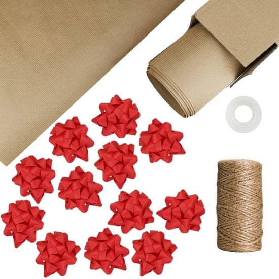 Set za zavijanje daril, set vsebuje: * 12× večjih rdečih pentelj * 1× selotejp * 1× vrvica iz jut… Celoten opis