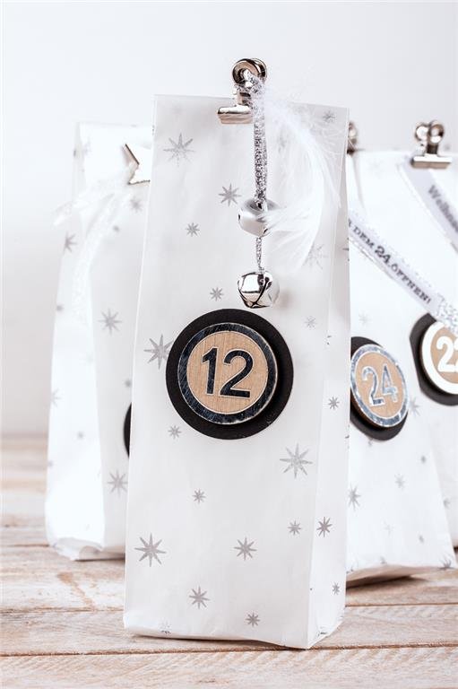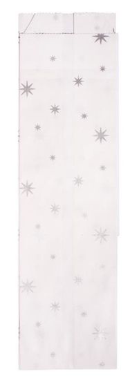 Ne glede na to, ali je božična embalaža ali zložena in zlepljena za izdelavo prefinjenih papirnatih zvezd – bela papirnata vrečka z dimenzijami 7 × 24 cm in prazničnim tiskom zvezd je vsestranska.