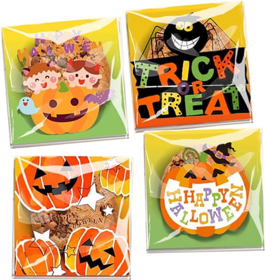 Celofanske vrečke za piškote, tema noči čarovnic, 100 kosov, 10 × 10 cm Celoten opis