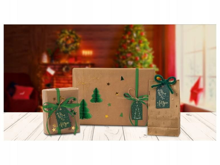 • Popolno za zavijanje božičnih, rojstnodnevnih in daril za posebne priložnosti Široka izbira dodatkov: od klasičnih vrečk do bleščic in 3D božičnih drevesc