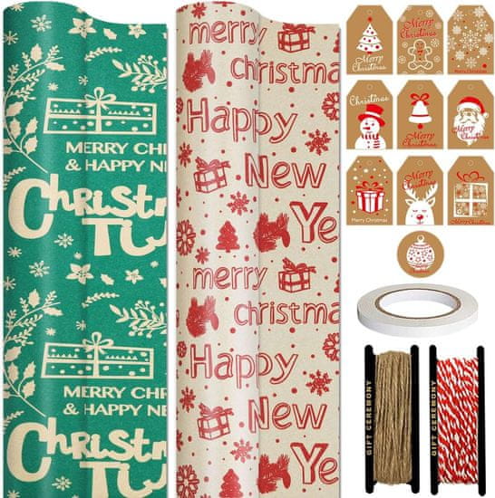 shumee Darilni papir za zavijanje daril, božično-dekorativni, 0,43x15 m, 2 kosa.