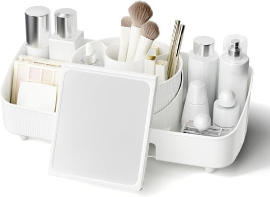 Opis izdelka: Z vrtljivim organizatorjem za ličila znamke KOSEYA vnesite red in eleganco v svojo toaletno mizico. Ta edinstven izdelek združuje funkcije ličilnega ogledala in shranjevanja kozmetike, kar zagotavlja maksimalno funkcionalnost in prihranek prostora. Vgrajeno ličilno ogledalo organizatorja omogoča enostaven in priročen nanos ličil, medtem ko 360° vrtljiva zasnova ponuja popoln dostop do vseh shranjenih izdelkov.