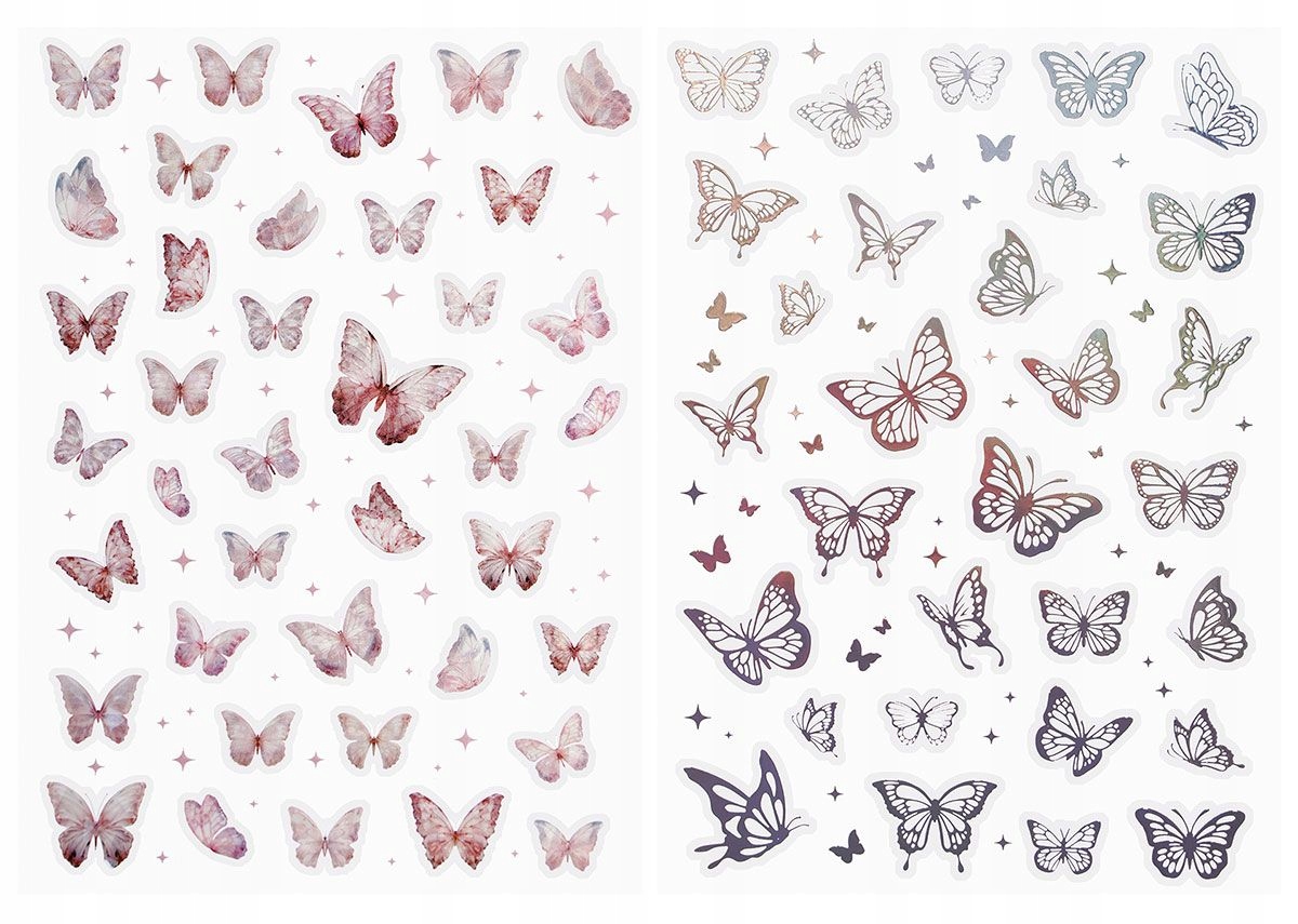 HOLOGRAFSKE FOLIJASTE NALEPKE Z ROZA METULJI, 2 LISTA