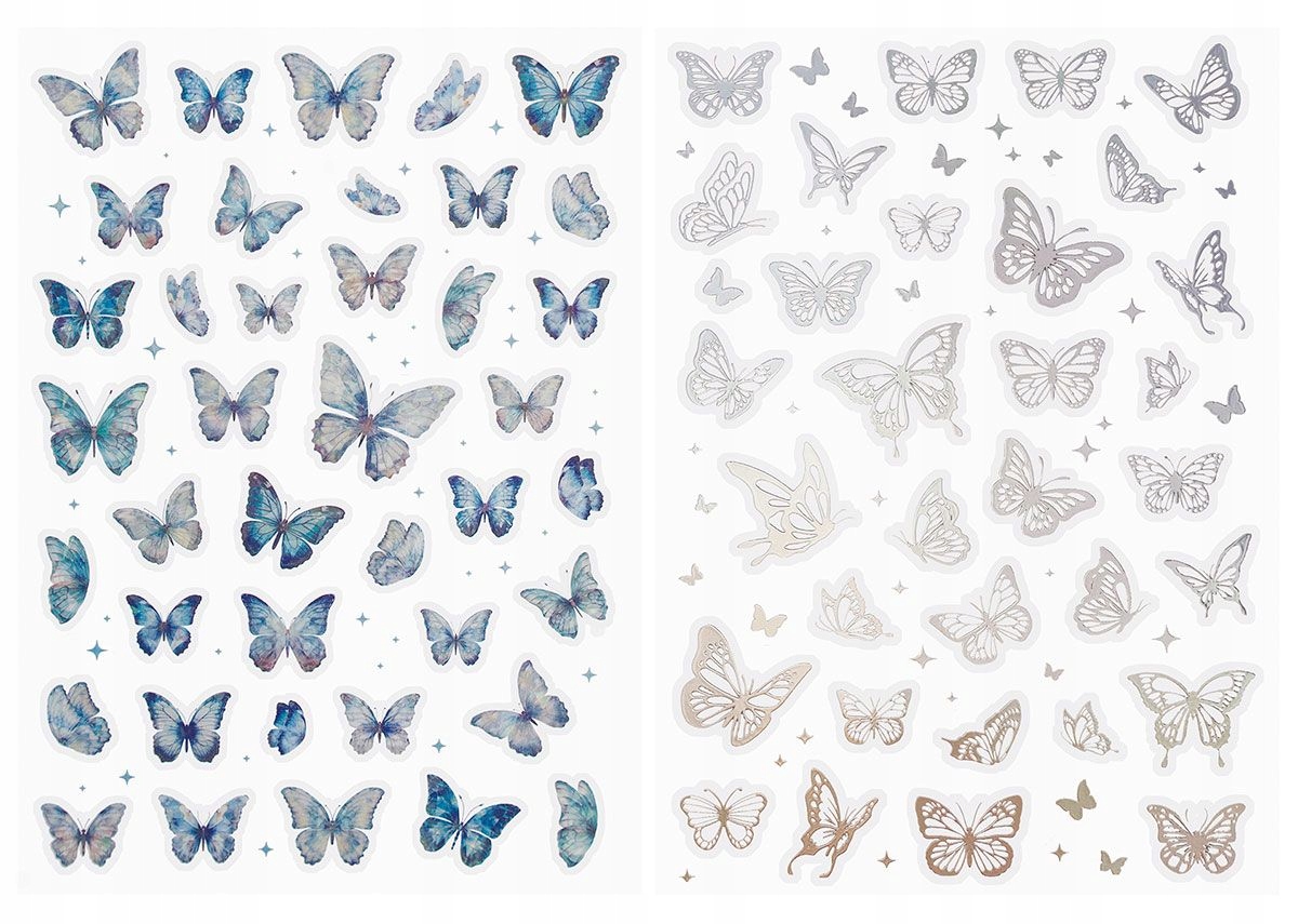 Te folijske nalepke v obliki metulja so komplet dveh listov z metulji v modrih odtenkih, na voljo v različnih velikostih. Nalepke so izdelane iz folije, so trpežne in sijoče, kar vašim projektom daje edinstven učinek. Popolne so za okraševanje voščilnic, vabil, albumov in drugih ročnih del. Ti modri metulji so odlični za ustvarjanje spomladanskih okraskov, rojstnih dni ali drugih posebnih priložnosti.