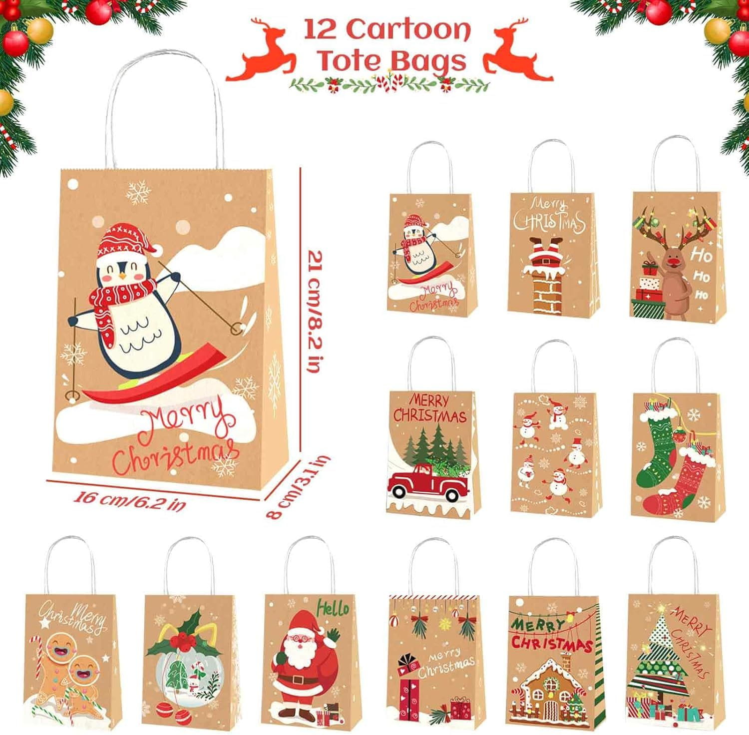 Papirnate vrečke z nalepkami za darila 22×12cm rjave 12 kosov Celoten opis