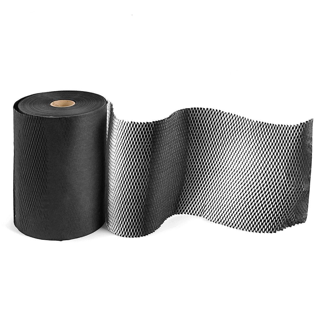 Črni ovojni papir z zarezami v obliki satovja je okolju prijazna, varna in estetska rešitev za pakiranje izdelkov. Dimenzije: 30 cm x 100 m. Celoten opis