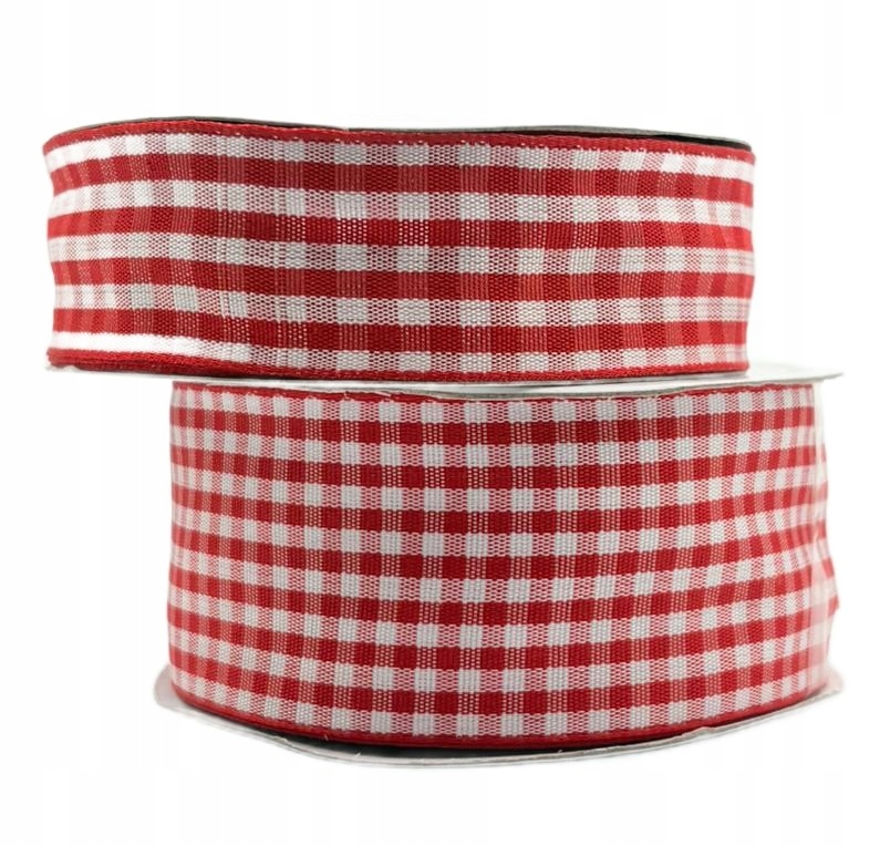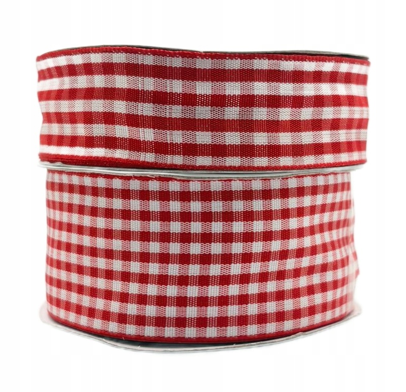 Rdeč karoiran satenast trak v roli 38 mm 22 m za dekoracijo