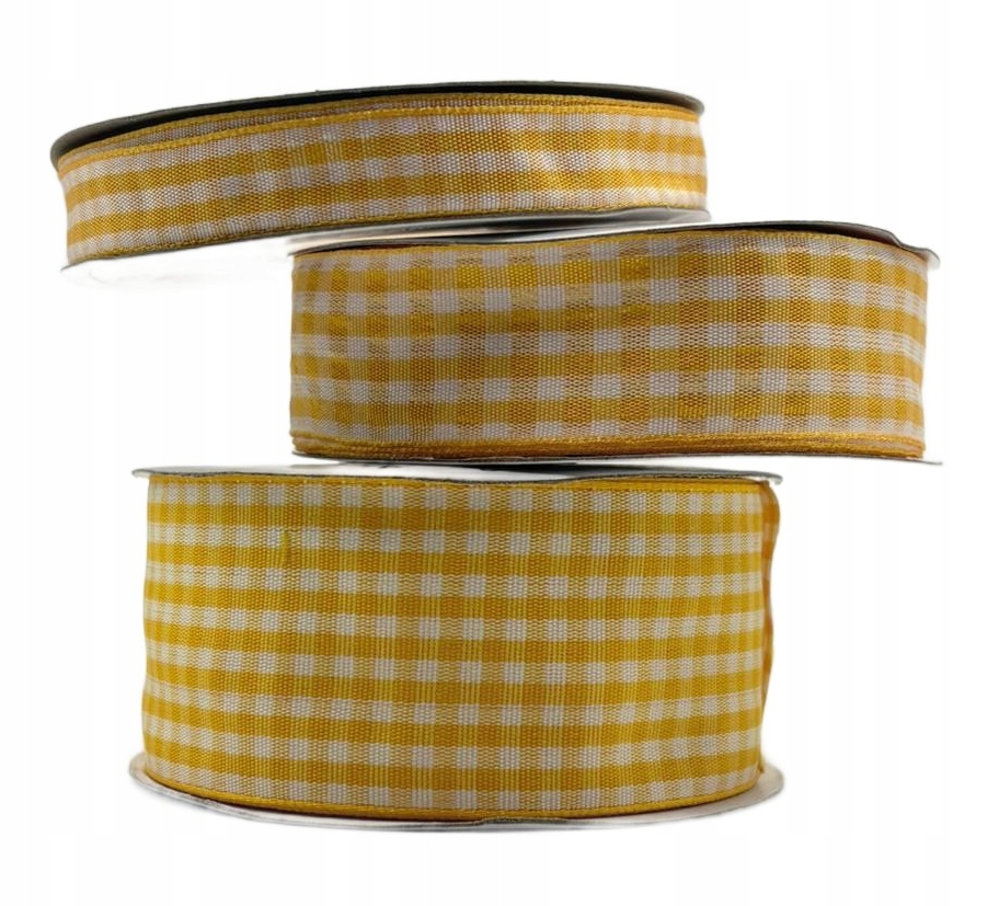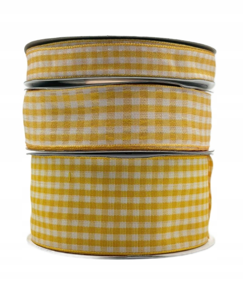 Saten trak s karo vzorcem, rumen, zvitek 12 mm, 22 m, za dekoracijo Celoten opis