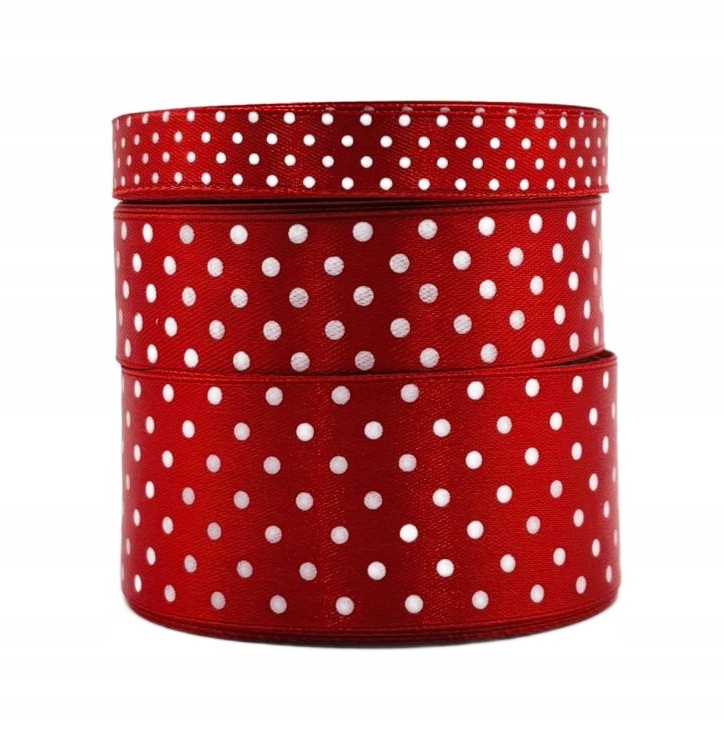 Rdeč pikčast satenasti trak v roli 12 mm 22 m za dekoracijo