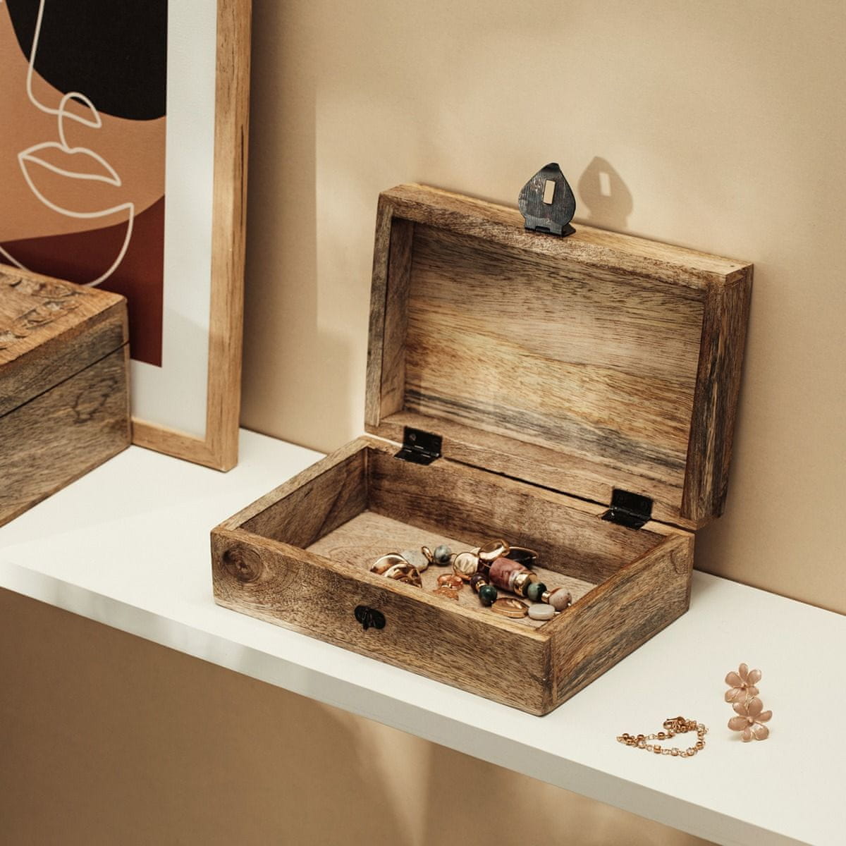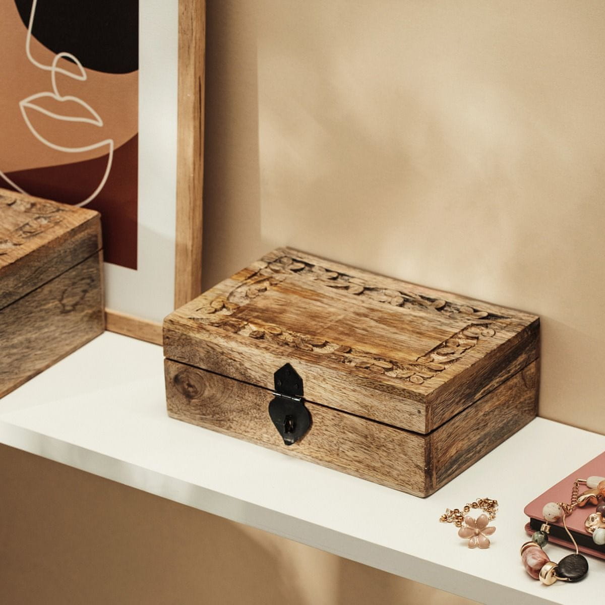 shumee Škatla za nakit SOMBRE rezljana lesena 22x14x8 cm 966792