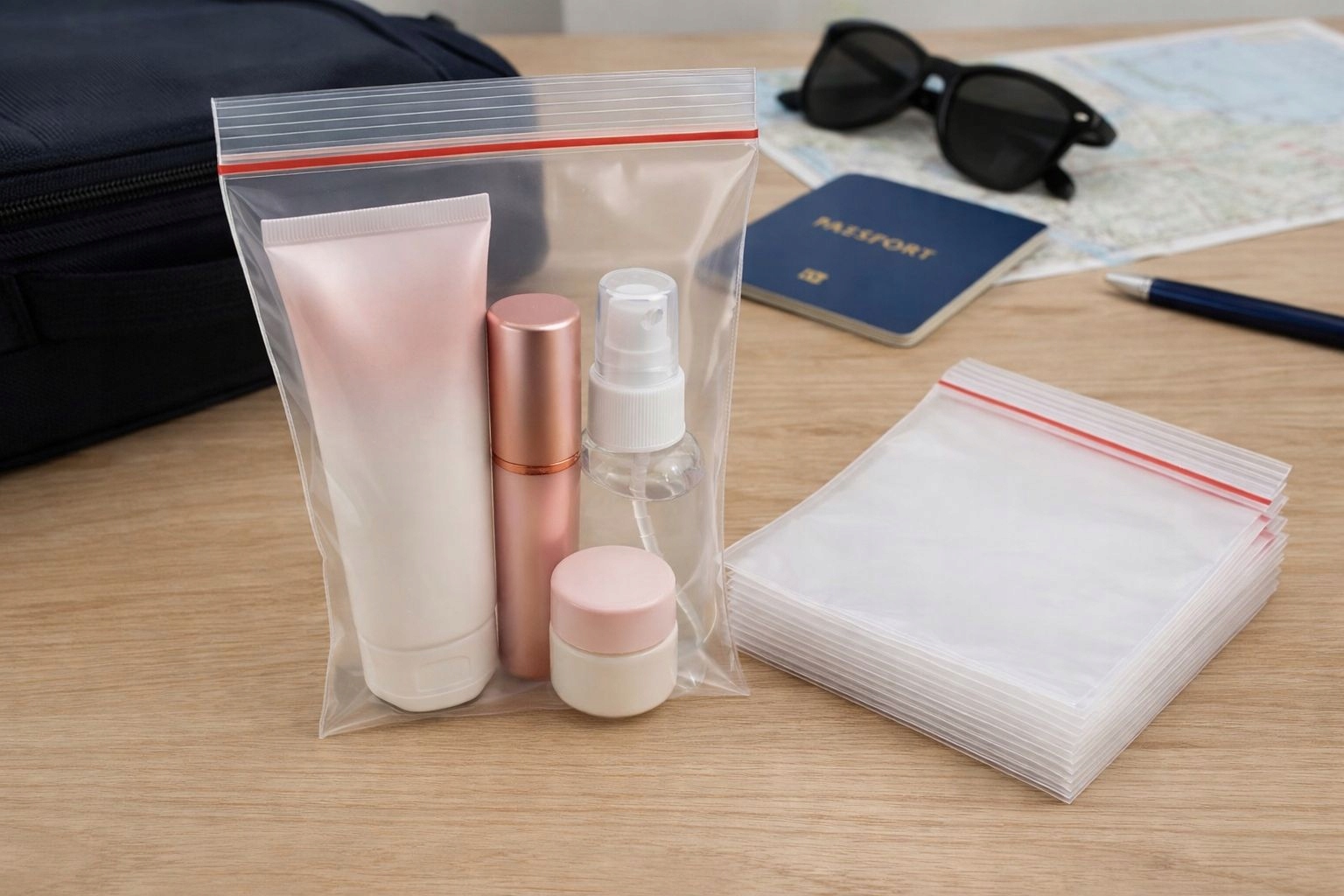 Praktične vrečke z zadrgo iz trpežne, prozorne folije. Zahvaljujoč robustnemu zadrgovanju učinkovito ščitijo vsebino pred vlago, prahom in umazanijo.