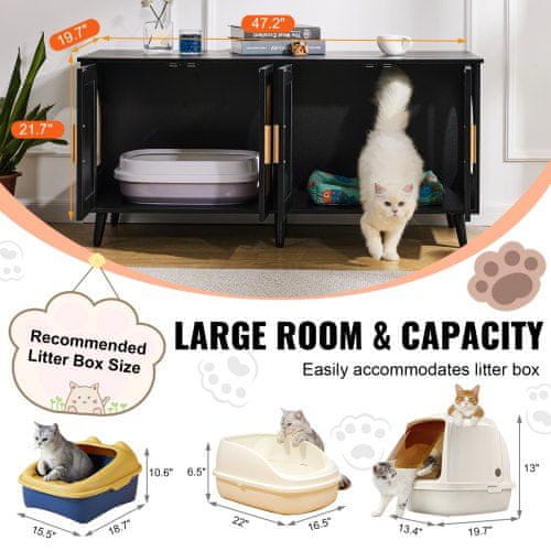 Ta hiireliivakasti kummut pakub stiilset ja praktilist lahendust lemmikloomaomanikele kes soovivad hoida oma eluruumi korras ja organiseerituna. Selle kaasaegne disain millel on rattaniga kaunistatud uksed peidab liivakasti diskreetselt ning sulandub sujuvalt kodu sisekujundusega. Ruumikas sisemus mahutab mugavalt kahte kassi ning pakub lisapinda ja hoiuvõimalusi mitmekülgseks kasutamiseks igas toas.