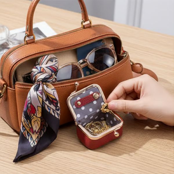 LUXIBOX kompaktna usnjena škatlica za nakit iz prave goveje kože nudi eleganten in varen način shranjevanja prstanov, uhanov in verižic. Retro dizajn, zlata sponka in prenosna velikost jo naredijo idealno za potovanja in vsakdanjo uporabo. Celoten opis