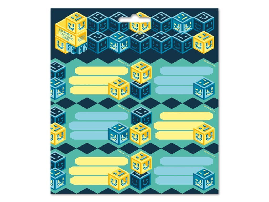 Imenice za zvezke iz kolekcije Geek. V paketu so trije listi po 6 imenic, skupaj torej 18 kosov. 7,7 × 4 cm.