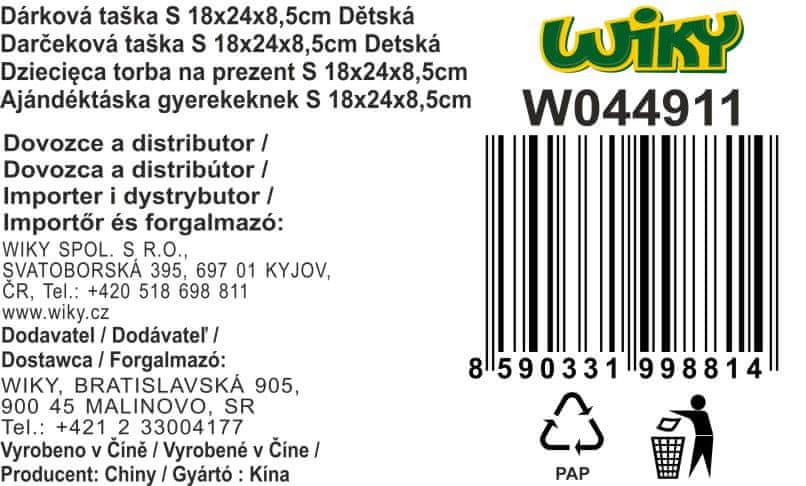 Velikost darilne vrečke S 18×24×8,5 cm Otroška. 4 vrste. Celoten opis