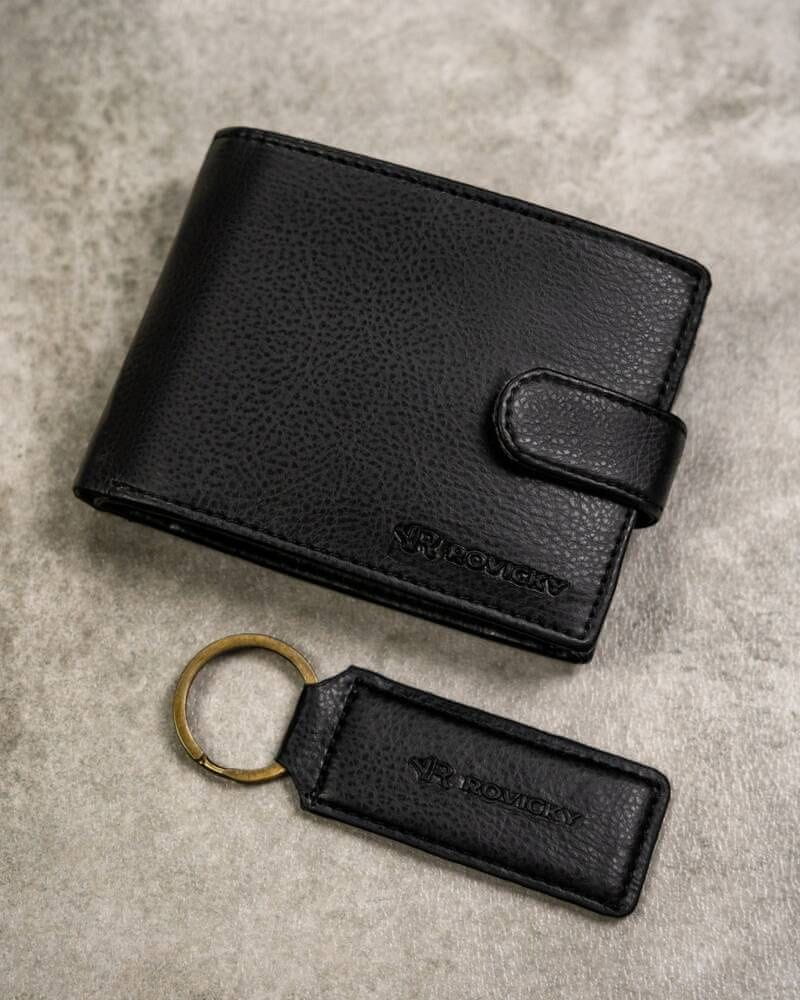 Darilni komplet: Moška usnjena denarnica in obesek za ključe – Rovicky
