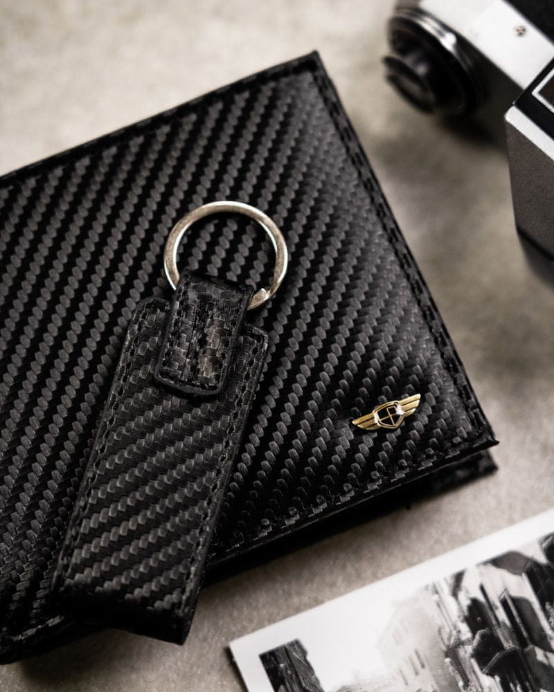 - Priložen je eleganten obesek za ključe | Obesek za ključe bo okrasil vaše ključe. Tako kot denarnica je oblikovan tako, da spominja na ogljikova vlakna.