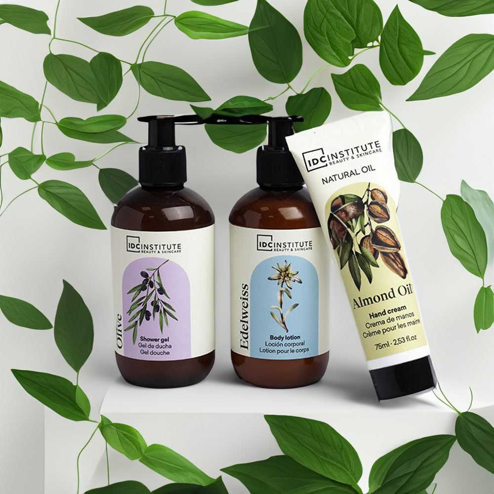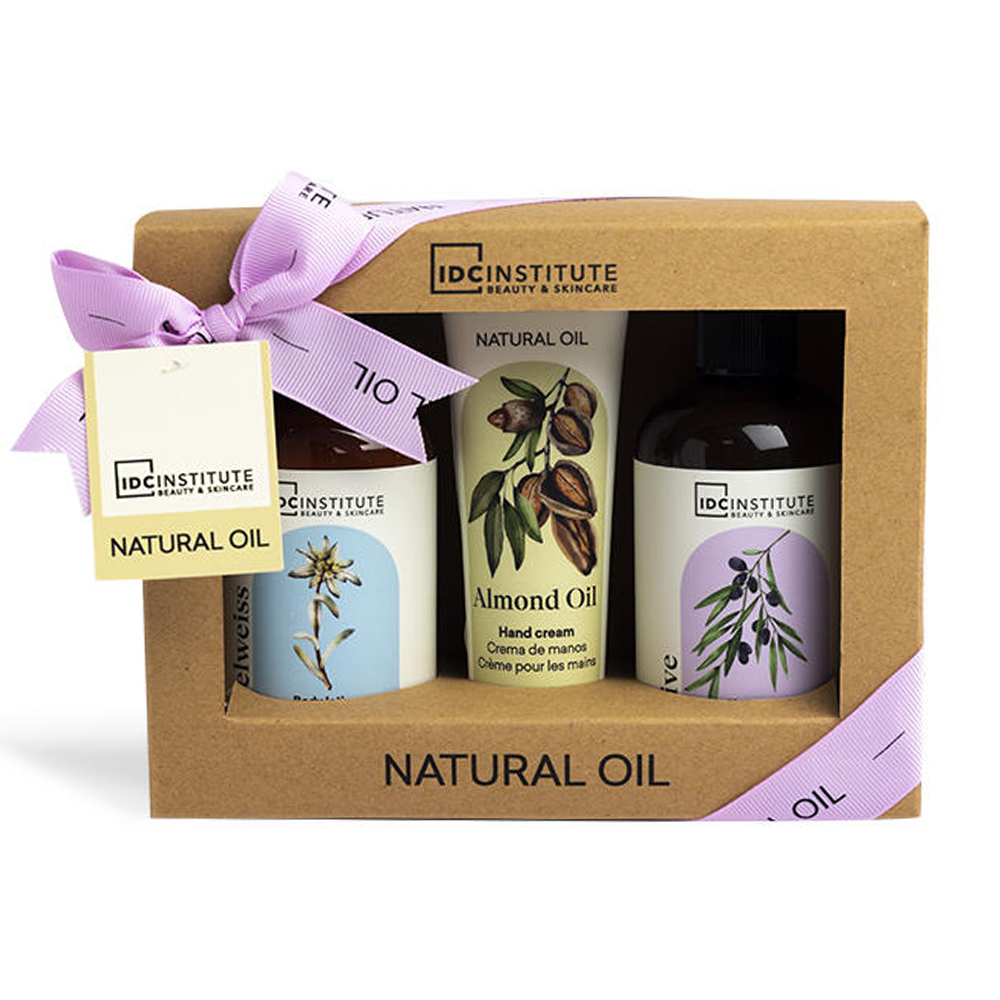 Izdelek: Komplet kozmetike za telo Blagovna znamka: IDC Institute Serija: Naravno olje Vsebina kompleta: Gel za prhanje 250 ml, losjon za telo 250 ml, krema za roke 75 ml Namen uporabe: Za vse tipe kože Sestavine losjon za telo: voda (aqua), izopropil palmitat, cetearilni alkohol, gliceril stearat, peg-100 stearat, fenoksietanol, ceteareth-6, ceteareth-25, karbomer, parfum (dišava), kaprilil glikol, natrijev hidroksid, benzil salicilat, heksil cinamal, geraniol Oznaka v: poljščina, angleščina
