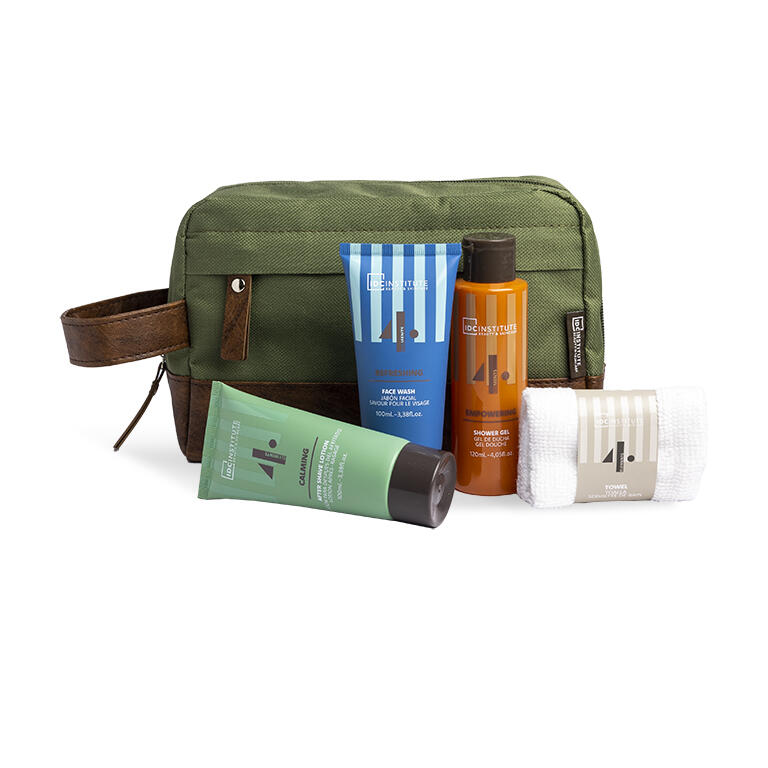Moški set za nego obraza v elegantni kozmetični torbici IDC, 1 kos. Celoten opis