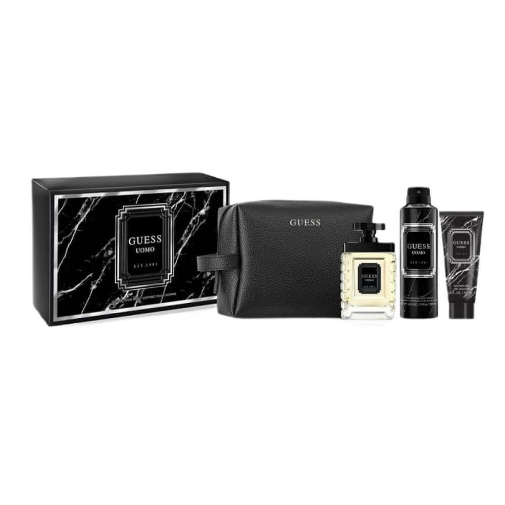 Odkrijte bistvo zapeljevanja z darilnim setom Guess Uomo, ki vsebuje 100 ml toaletne vode, 100 ml gela za tuširanje, 226 ml deodoranta v spreju in praktično kozmetično torbico Uomo je ikonična in edinstvena dišava za moške. Intenzivna, zasvojljiva dišavna kompozicija, izdana leta 2022.; Zgornje note: kardamom, sivka, geranija; Osnovne note: jantar, benzoin EDT: SD ALKOHOL. 40– B (ALKOHOL DENAT.), DIŠAVA/PARFUM, VODA/EAU (AQUA), ETILHEKSIL METOKSICINAMAT, BENZOFENON-3, ETILHEKSIL SALICILAT, BUTIL METOKSIDIBENZOILMETAN, BHT, RUMENA 5 (CI 19140), RUMENA 6 (CI 15985), ZUN. VIJOLICA 2 (CI 60730), ALFA-IZOMETIL IONON, CITRAL, CITRONELOL, KUMARIN, GERANIOL, LIMONEN, LINALOOL.