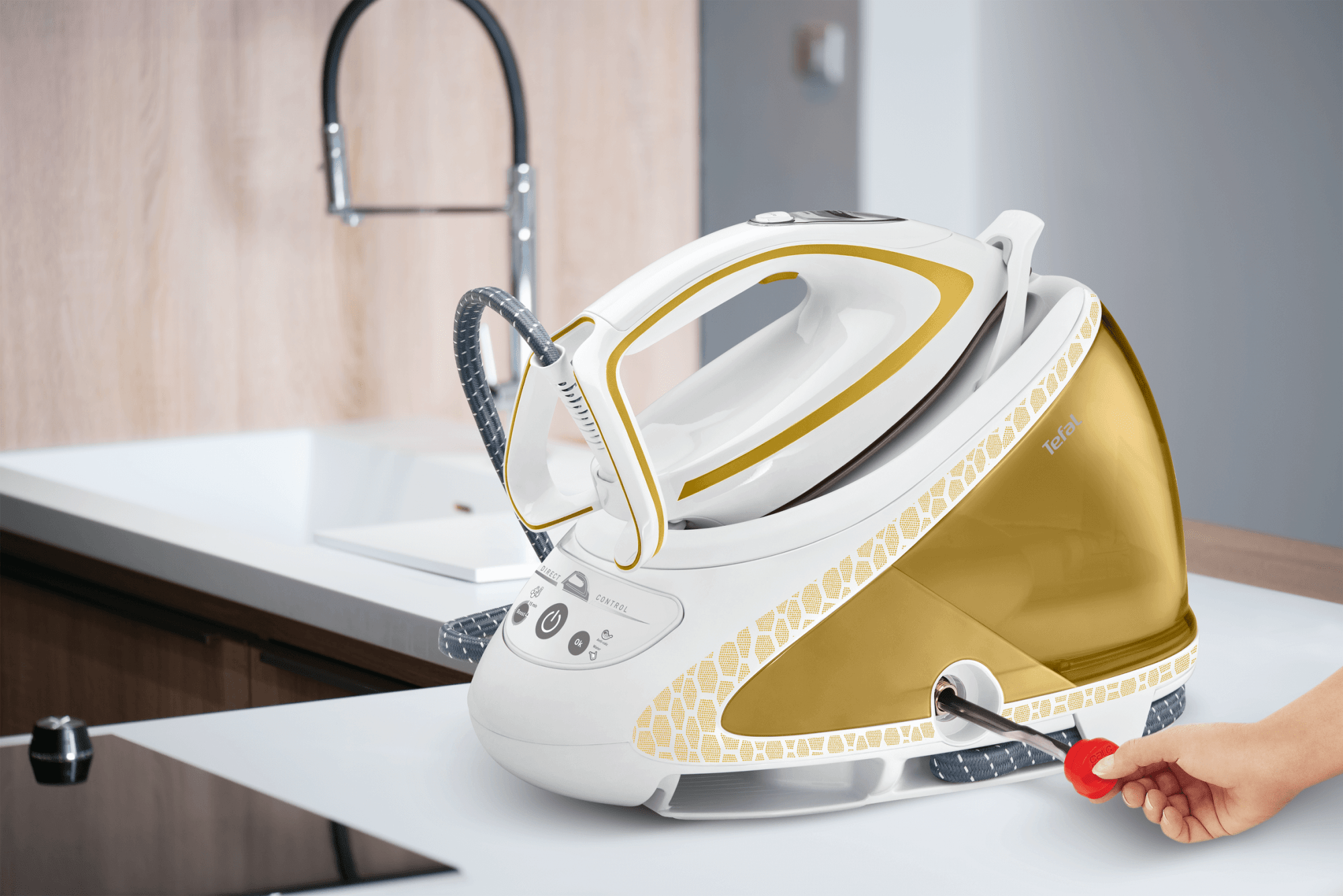 - Zagotavlja čiščenje vodnega kamna s tehnologijo Tefal Autoclean