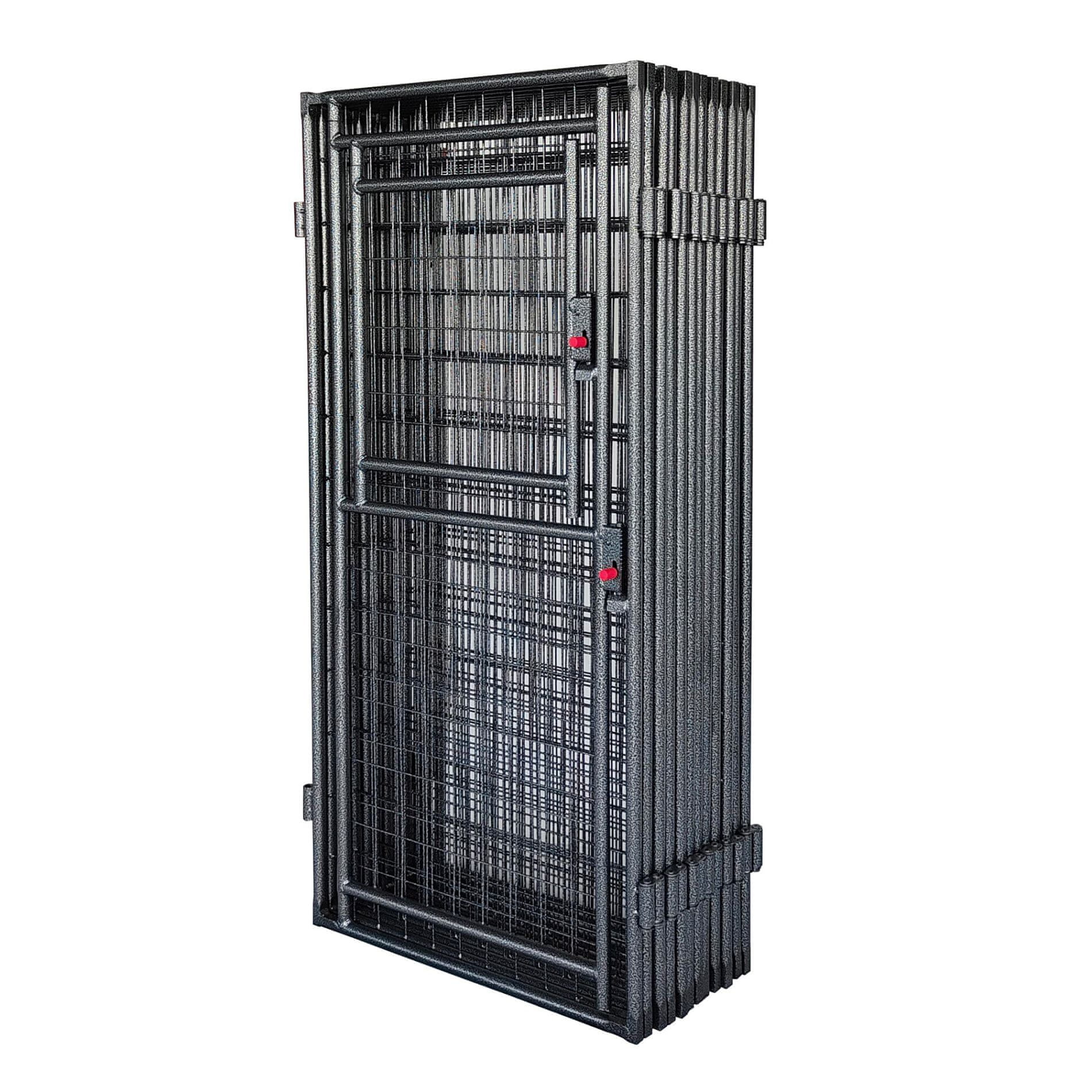 Dvanajst posameznih kovinskih delov je mogoče enostavno povezati s pomočjo povezovalnih tečajev. Kotec je mogoče kombinirati z drugimi kletkami znamke Aga v različnih različicah glede na vaše prostorske možnosti.Poleg tega je opremljen z vrati, kar omogoča večjo prilagodljivost pri vstopanju in izstopanju.
