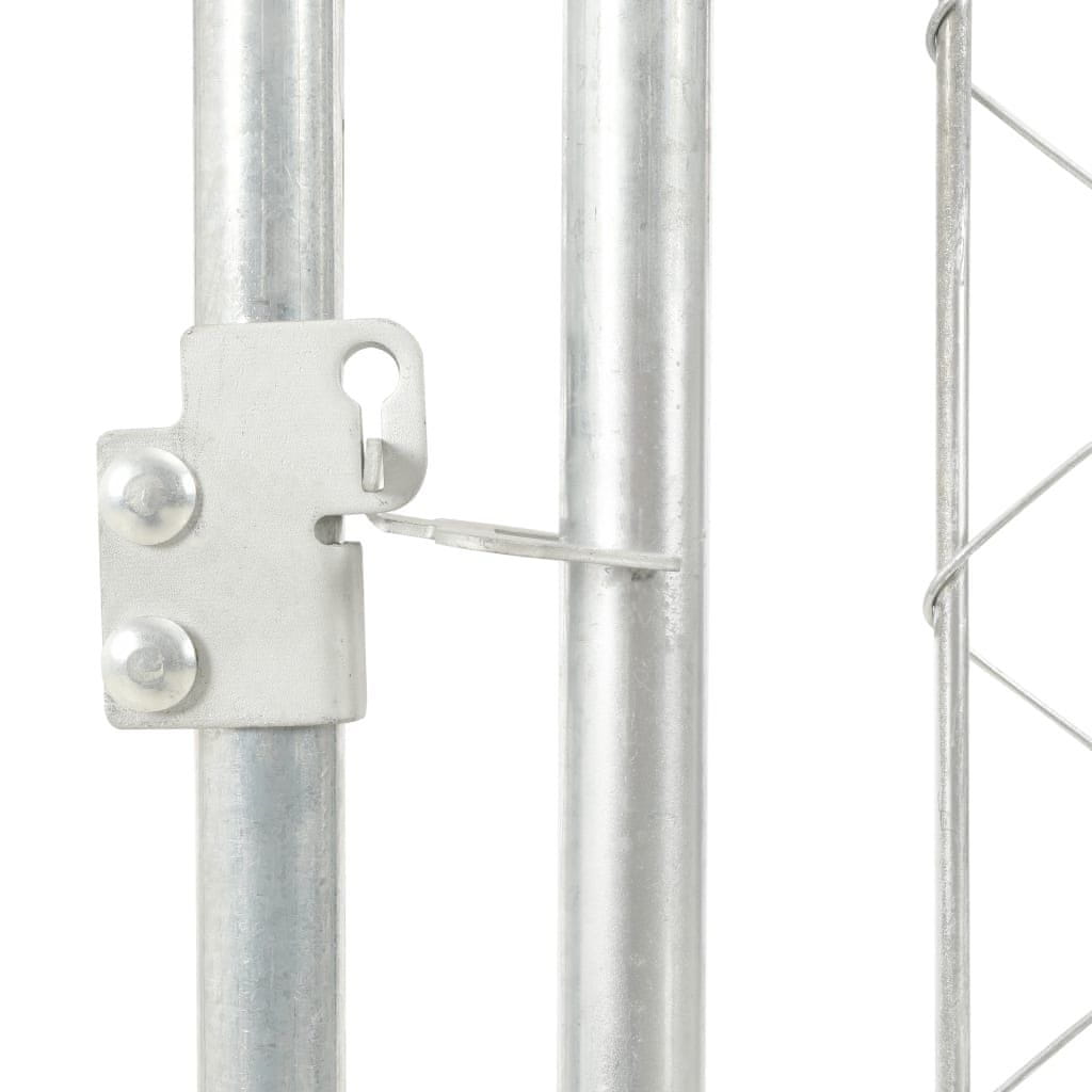 Barva: srebrnaMaterial: pocinkano jekleno ogrodje + tekstilSkupne mere: 200 × 200 × 100/135 cm (D x Š x V)Mere vrat: 50 × 85 cm (Š x V)S strehoZapiranje na kljukoBočne stene iz šestkotne mrežePrimerno za pseMaterial: polietilen: 100%