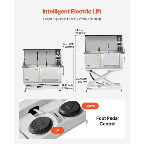 Ta profesionalna pasja pralnica iz nerjavečega jekla ima električno dvigalo za enostavno nastavitev višine in nedrsečo ploščo z vodnim filtrom za varnost hišnih ljubljenčkov. Idealna za nego več hišnih ljubljenčkov, poenostavlja kopanje z integrirano pipo in prho. Dimenzije: 127×70×134–190 cm. Celoten opis