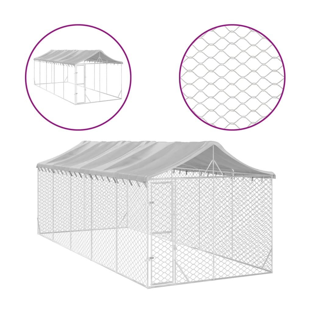 Vidaxl Zunanja pasja ograda s streho srebrna 3x7,5x2,5 m pocink. jeklo