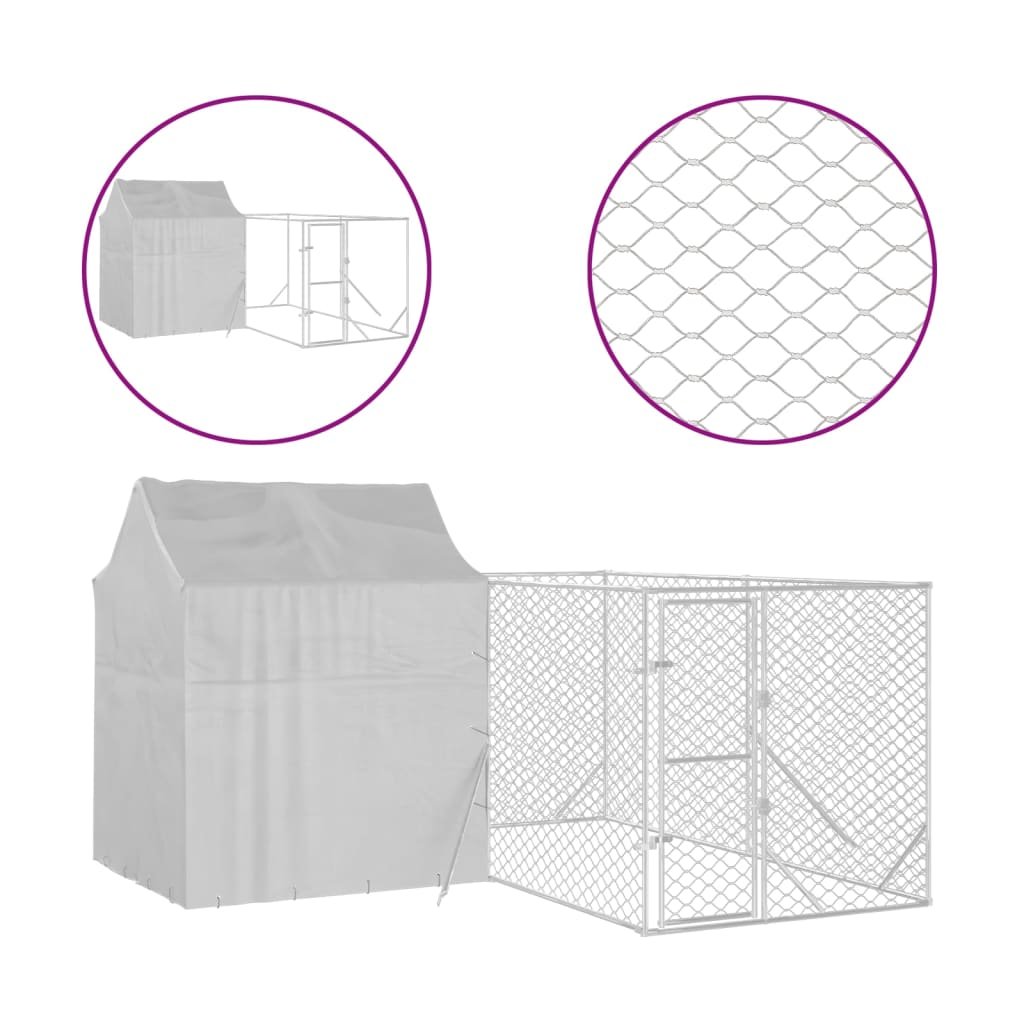 Vidaxl Zunanja pasja ograda s streho srebrna 4x4x2,5 m pocinkano jeklo