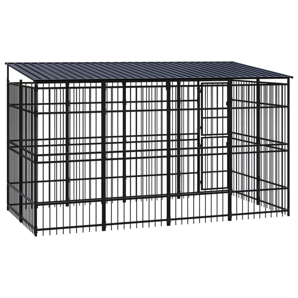 Vidaxl Zunanji pasji boks s streho jeklo 7,37 m²