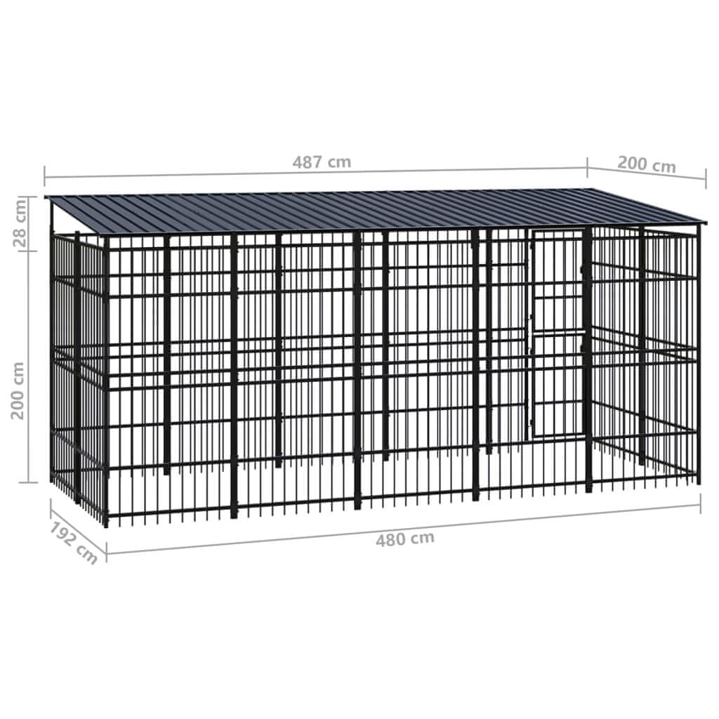Vidaxl Zunanji pasji boks s streho jeklo 9,22 m²