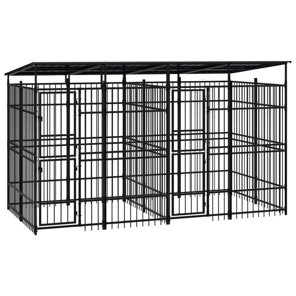 Vidaxl Zunanji pasji boks s streho jeklo 7,37 m²