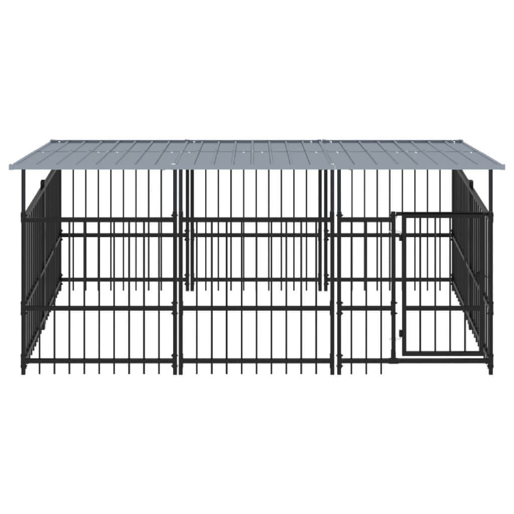 Vidaxl Zunanji pasji boks s streho jeklen 5,63 m²
