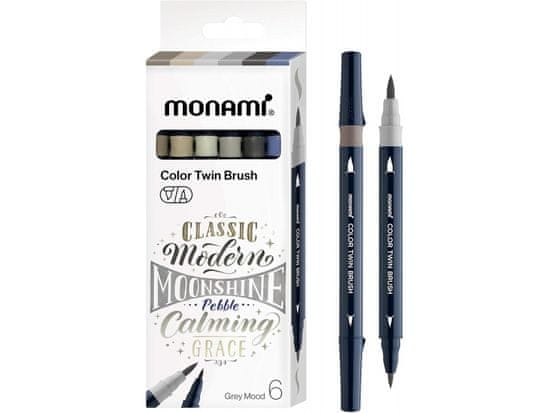 MONAMI Komplet markerjev za kaligrafijo in ilustracije Monami Color Twin Brush - Sivi komplet, 6 kosov