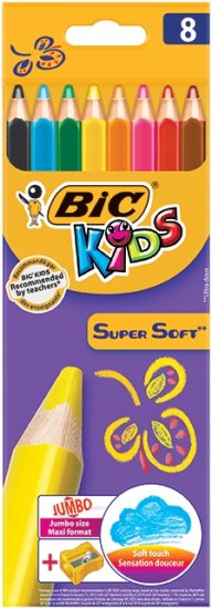 Svinčnikiv 8 barvah. Svinčniki imajo mehko svinčnik, ki jim daje žive barve in odlično prekrivnost. Trikotni, izjemno mehak, masiven svinčnik. Paket vsebuje šilček.