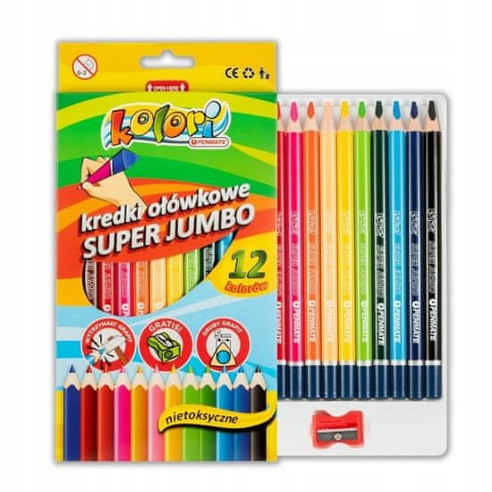 Debeli svinčniki v trikotnem tulcu. 5 mm svinec s povečano odpornostjo proti zlomu. Sodobna pigmentna formula zagotavlja žive, obstojne barve.