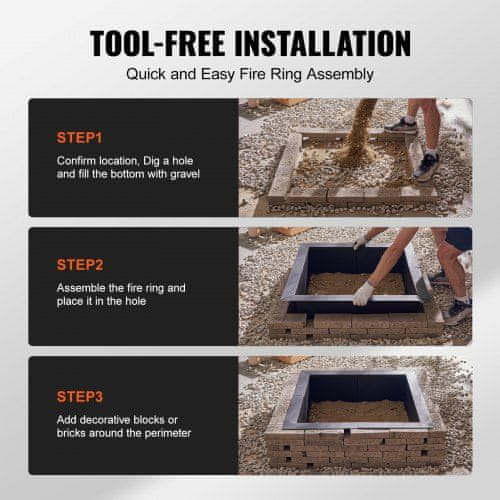 VEVOR Obroč za ogenj YCIS-30001-30 1067x1067x25 cm Črn