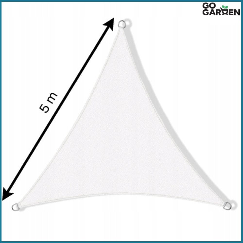 ⛱️ TRIKOTNO JADRO 5×5×5 m – BELA UV VODODPORNA SENČILA ZA VRT