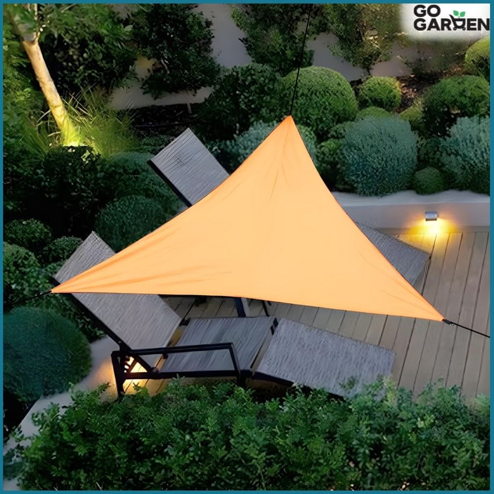 Trikotno jadro 3,6×3,6×3,6 m je funkcionalna streha za vrt, teraso ali balkon. Bež barva se ujema z boho slogom in naravo, material pa ščiti pred soncem in rosenje .