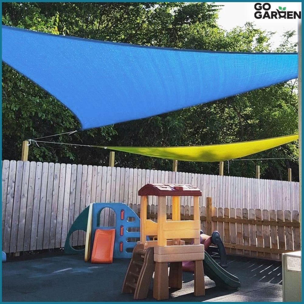 ☀️ SONČNO JADRO 5×5×7 m TEMNO MODRA – TRIKOTNO, UV, VODOODPORNO, ZA VRT, TERASO