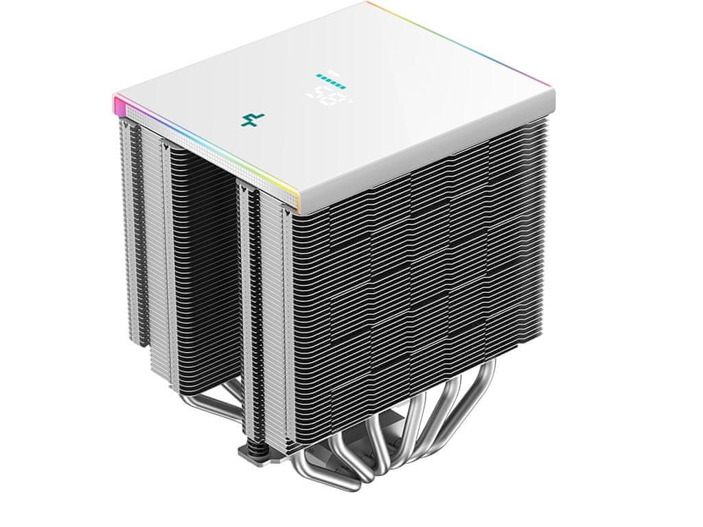 DeepCool AK620 DIGITAL SE WH je zmogljiv zračni hladilnik, ki združuje estetiko in surovo moč v snežno beli barvi. Njegova izstopajoča lastnost je digitalni zaslon na vrhu, ki v realnem času prikazuje temperaturo in obremenjenost procesorja ter vas opozori na morebitno pregrevanje. S šestimi naprednimi bakrenimi toplotnimi cevmi in bakrenim podnožjem hladilnik z lahkoto obvladuje procesorje z močjo do 260W TDP, kar ga uvršča med idealne izbire za navijanje (overclocking) in najzahtevnejša opravila.