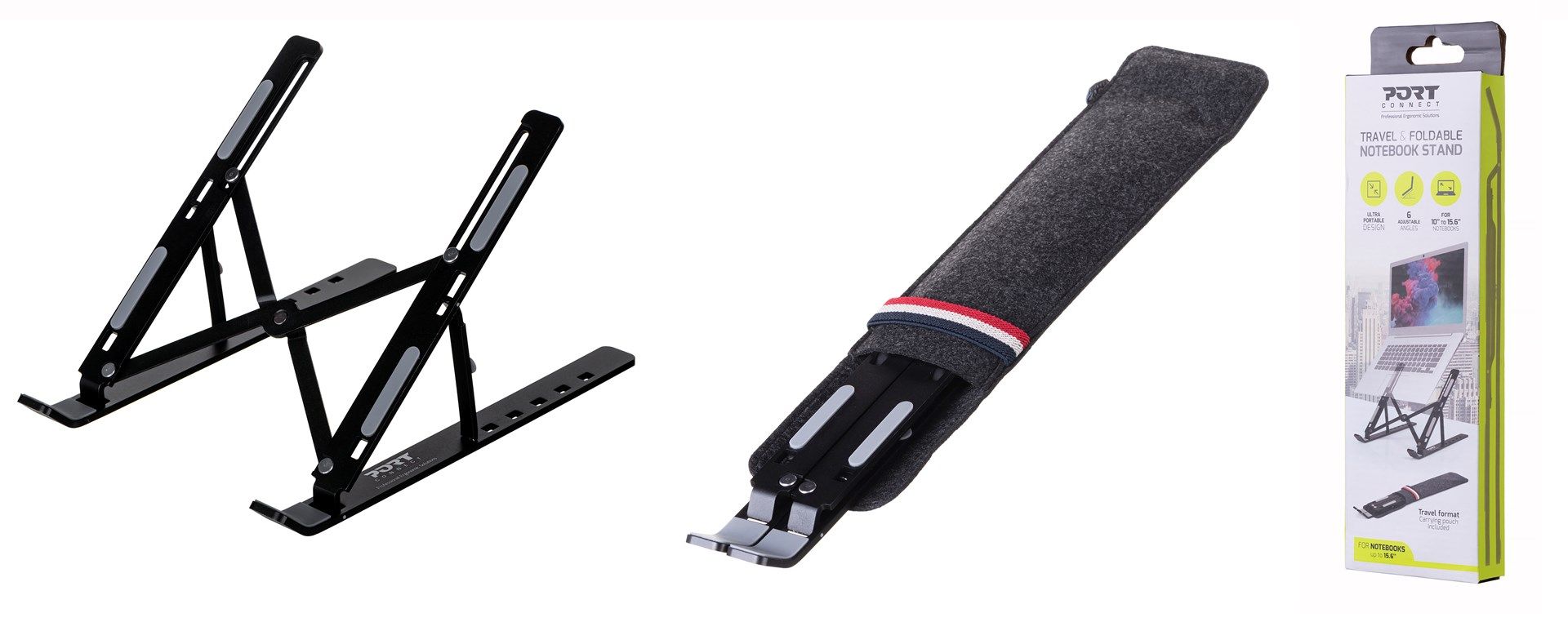 Prenosno stojalo za prenosnike Port Designs 901107 je vrhunska rešitev za vaše delo in zabavo na poti. Zasnovano je za prenosnike z zasloni velikosti do 39,6 cm (15,6"), kar ga naredi izjemno prilagodljivega za širok spekter prenosnih računalnikov. Stojalo je izdelano iz lahkega aluminija in silikona, kar zagotavlja odlično stabilnost ob minimalni teži le 260 g.