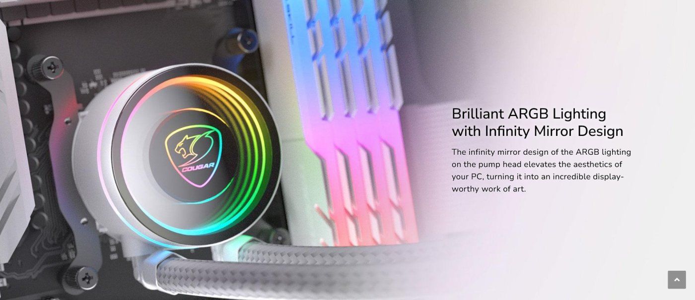 Neskončno zrcalna zasnova osvetlitve ARGB na glavi črpalke povzdigne estetiko vašega računalnika in ga spremeni v neverjetno umetniško delo, vredno ogleda.