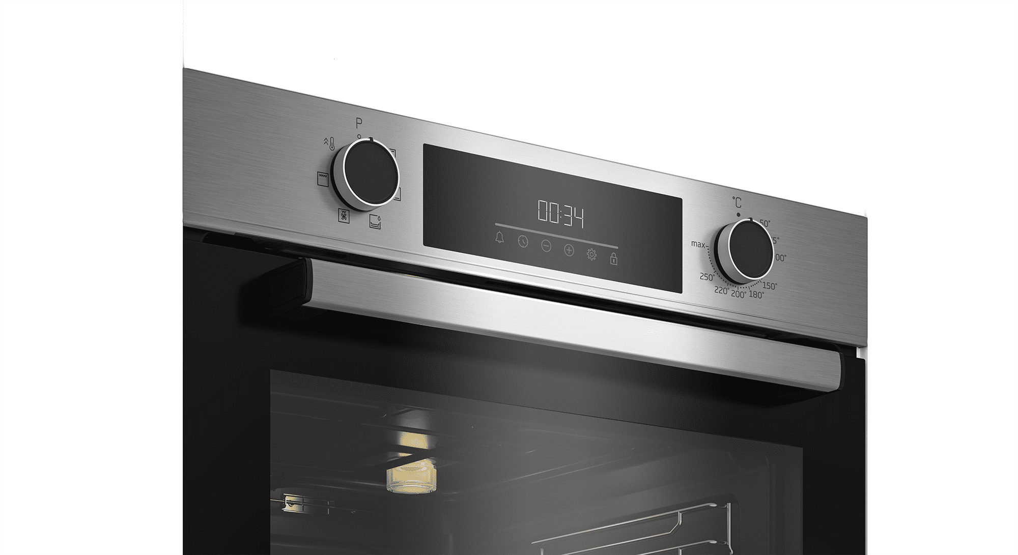 Vgradna pečica BBIE12300XD se ponaša s 6-imi programi, uvršča pa se v energijski razred A. Pečico odlikuje velika prostornina z 72 L. Pečica se upravlja z gumbom in na dotik, vse podatke pa boste lahko spremljali na LED zaslonu. S programom samočistilnega parnega čiščenja SteamShine boste lahko pozabili na naporno drgnjenje ostankov