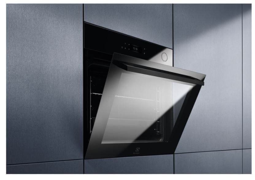 LED prikazovalnik s tipkami na dotik omogoča enostavno izbiro funkcij in načinov pečenja ter shranjevanje priljubljenih programov. Za enostavno samodejno čiščenje poskrbi pirolitično čiščenje, ki ob visoki temperaturi spremeni ostanke umazanije v pepel, ki ga nato preprosto obrišete. Pečica vas tudi opozori, ko je potrebno čiščenje. Odstranljiva vrata pa omogočajo temeljito čiščenje brez napora. Tako bo vaša pečica vedno čista in sijoča. Navdušuje z možnostjo oddaljenega upravljanja preko aplikacije My Electrolux Kitchen.