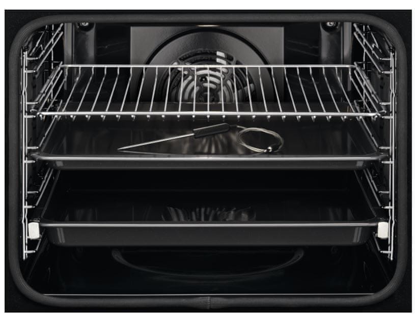 Zahvaljujoč dodatnemu grelcu omogoča enakomerno pečenje v Multilevel postavitvi v treh nivojih. S pečenjem z vlago SteamBake pečica omogoča, da testo povsem vzhaja, zaradi česar se ustvarijo slastne mehke sredice, medtem ko suha toplota ustvari bogato, bleščečo skorjo. S toplotno sondo/tipalom za jedi bosta lahko nadzorovali pečenje z merjenjem temperature jedra hrane. Ko hrana doseže želeno temperaturo, vas o tem opozori in ustavi pečenje. Če ste kdaj v časovni stiski, lahko uporabite funkcijo hitrega segrevanja, ki skrajša čas segrevanja pečice za uporabo. Kontrolni sistem pečice vam predlaga optimalno temperaturo glede na izbrani program, elektronski nadzor temperature pa zagotavlja enakomerno temperaturo po vsej notranjosti. Z varovalom za otroke vas ne rabita skrbeti nenamerni prižig pečice ali spreminjanje programa med peko, indikator preostale temperature pa omogoča uporabo še tople pečice za nadaljnjo peko. Samodejen prižig luči ob odprtju vrat olajšuje vstavljanje jedi, ob odprtju vrat pa se ventilator ustavi, da prepreči nepotrebno izgubljanje toplote in pretirano porabo energije.