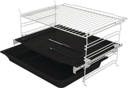 Gorenje BPSX6747A05BG je vgradna pirolitična pečica energijskega razreda A. Pečice Gorenje so znane po svoji inovativni zaobljeni odprtini, ki je že vrsto let njihova značilnost. Oblika HomeMade je bila navdihnjena s strani tradicionalnih peči na drva in zagotavlja boljše kroženje zraka v primerjavi s konkurenti. Zdaj je oblika HomeMade popolnoma prenovljena in pretok zraka izpopolnjen zaradi nove zasnove grelnika in izboljšane porazdelitve prezračevalnih odprtin. Zato je temperatura enakomerno porazdeljena po celotni pečici. Nikoli več na bodo vaše jedi prepečene na eni in premalo pečene na drugi strani.